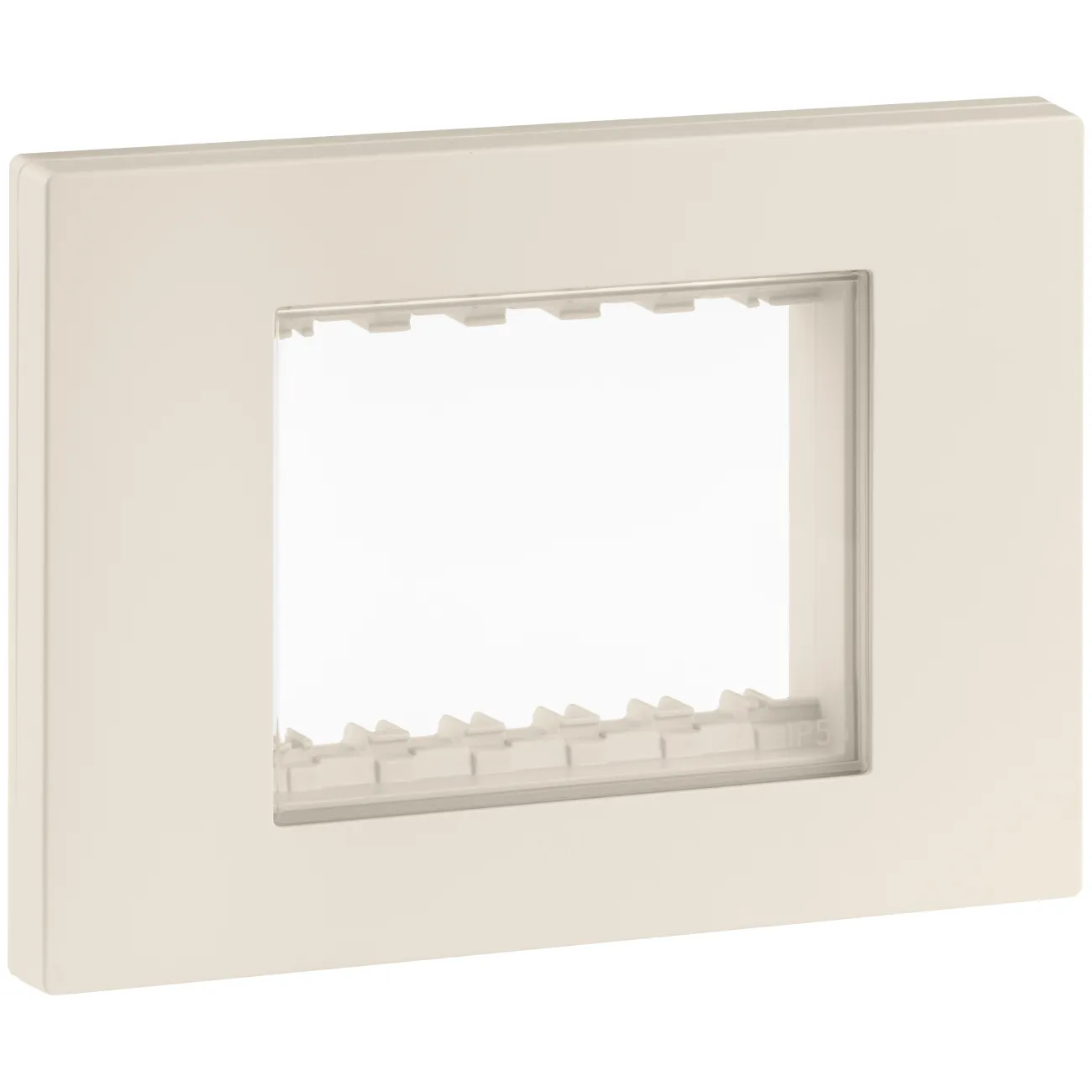Calotta da parete IP55 3 moduli Linea con finitura canapa, completa di viti per scatole da incasso. Ideale per installazioni esterne e ambienti umidi, con sportello di sicurezza, membrana in silicone e design sottile ed elegante.