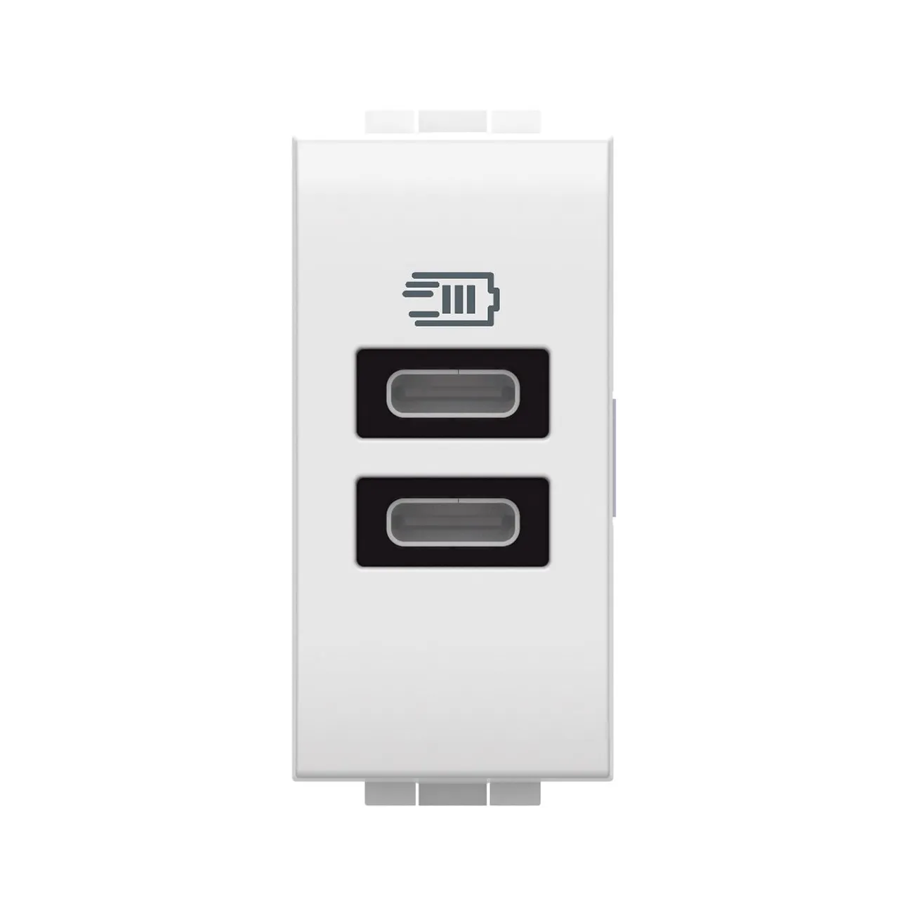 Caricatore USB Bianco con due porte tipo C con tensione 5 Vdc CARICA CELLULARI Living Light bticino N4191CC