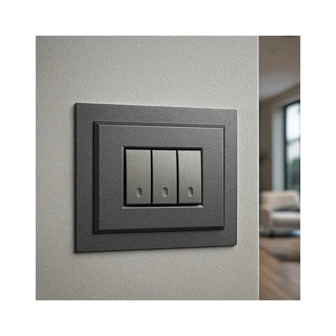 Prodotta in Italia dalla CAL La Panoramica di Brescia, è compatibile con tutte le placche a 3 moduli dei principali marchi come BTicino, Vimar, Urmet, Gewiss e altri. La finitura opaca ardesia si abbina facilmente a pareti chiare e scure, aggiungendo eleganza e contrasto.