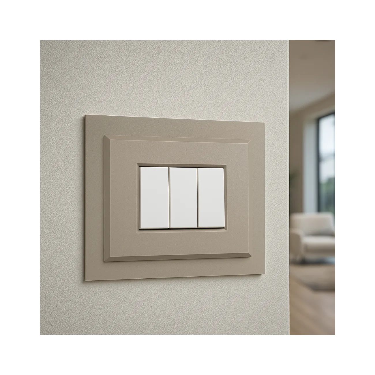 Con la cornice luce tortora opaco, anche i dettagli tecnici diventano protagonisti. Ideale per ambienti moderni, eleganti e curati nei minimi particolari, rappresenta la soluzione ideale per rendere ogni placca elettrica più speciale ed elegante.