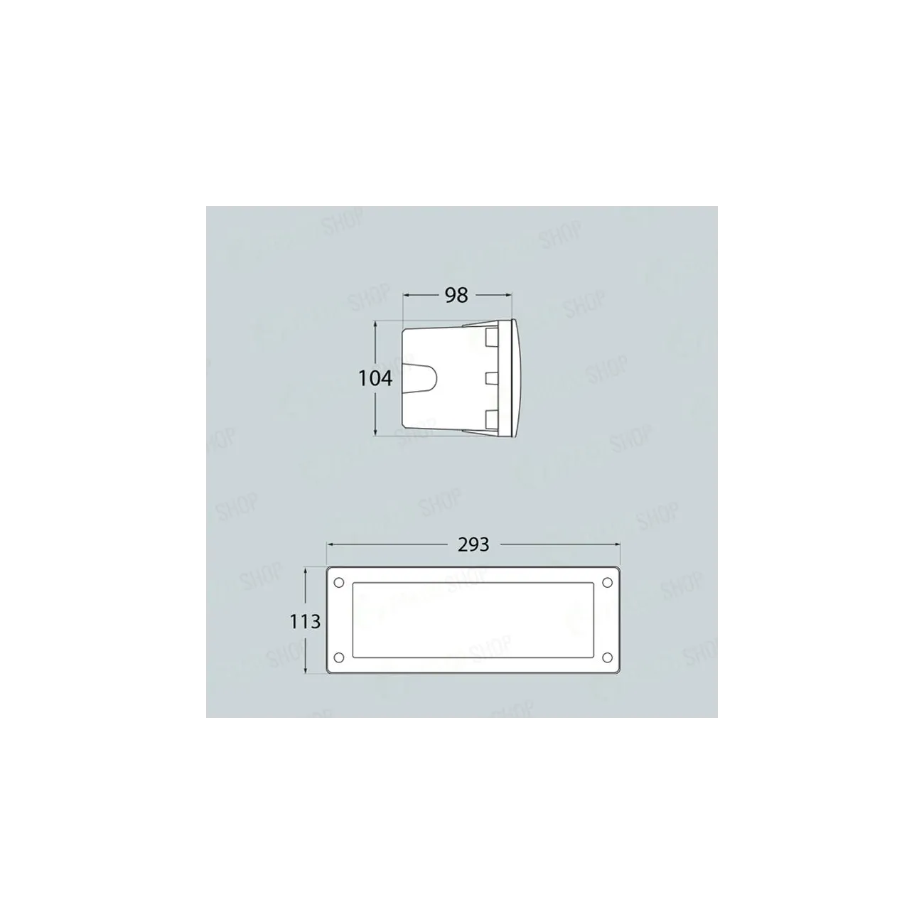 - Dimensioni: larghezza 293 mm – altezza 113 mm