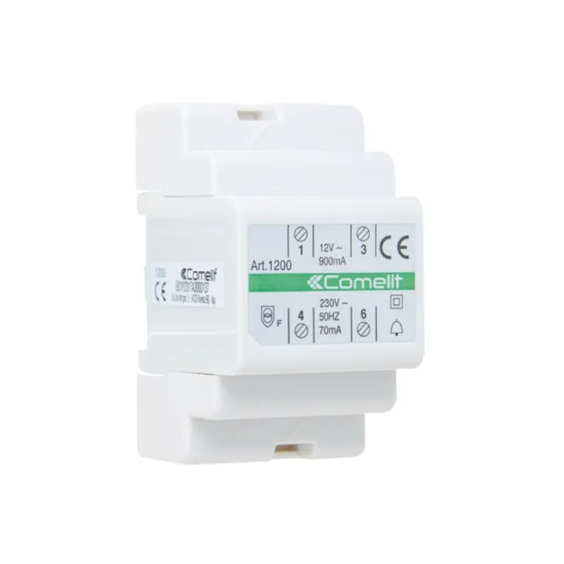 Il Comelit 1200 è un trasformatore affidabile progettato per alimentare dispositivi a 12 VAC partendo dalla rete elettrica 230 VAC. Grazie alla potenza nominale di 15 VA, è ideale per piccoli carichi, come componenti di sistemi citofonici e videocitofonici Comelit o altri dispositivi elettrici compatibili.